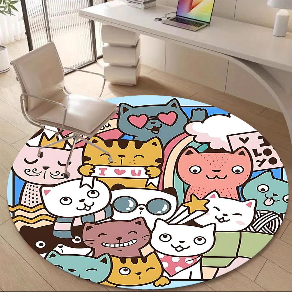 1PC Cats Love Office Round Area Rug, Mat Suitable ForOffice, Under Office Chairs Bedroom Living Room Home Decor, Room Deco