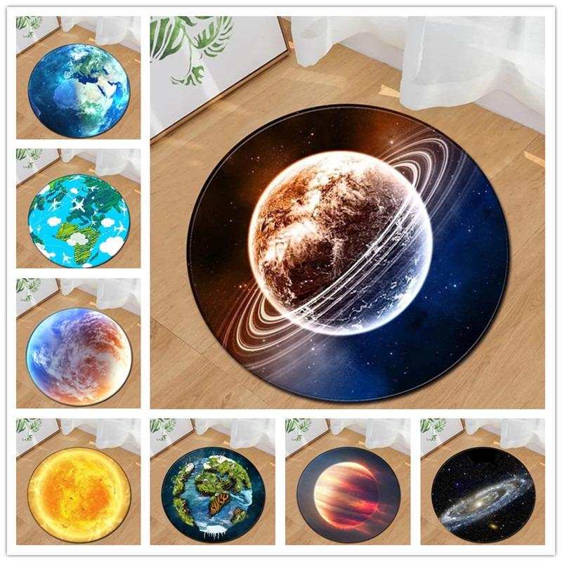 Earth Moon Ocean Round Carpet Circle Children Crawling Play Mat Home Decor Large Size Area Rugs for Living Room Bedroom Bathroom