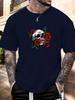 Mens Casual Tshirt Skull Rose Print Short Sleeve Round Neck Breathable Soft Oversized Edgy Daily Wear Tee