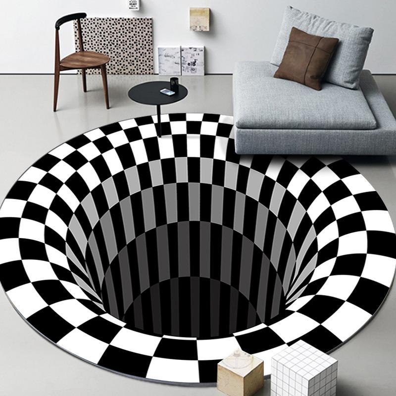 3D Vortex Optical Illusion Rugs Trap Area Carpet Anti-Slip Round Mats Large Carpets for Living Room Sofa Swirl Washable Carpet
