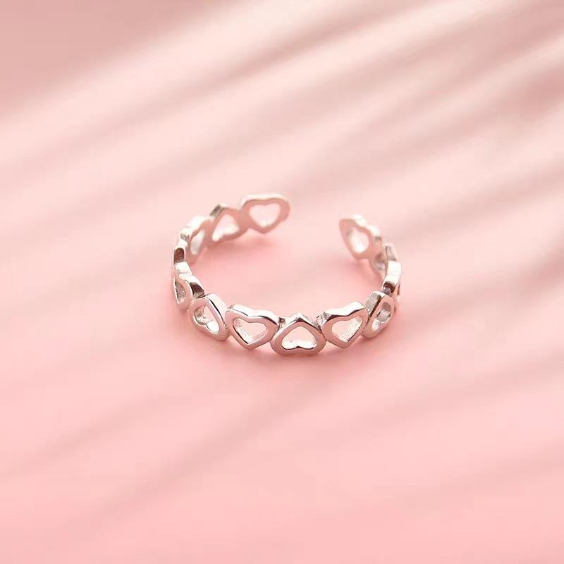 925 Silver Heart Hollow Opening Rings Fine Small Fresh Fashion Simple Love Jewelry R033