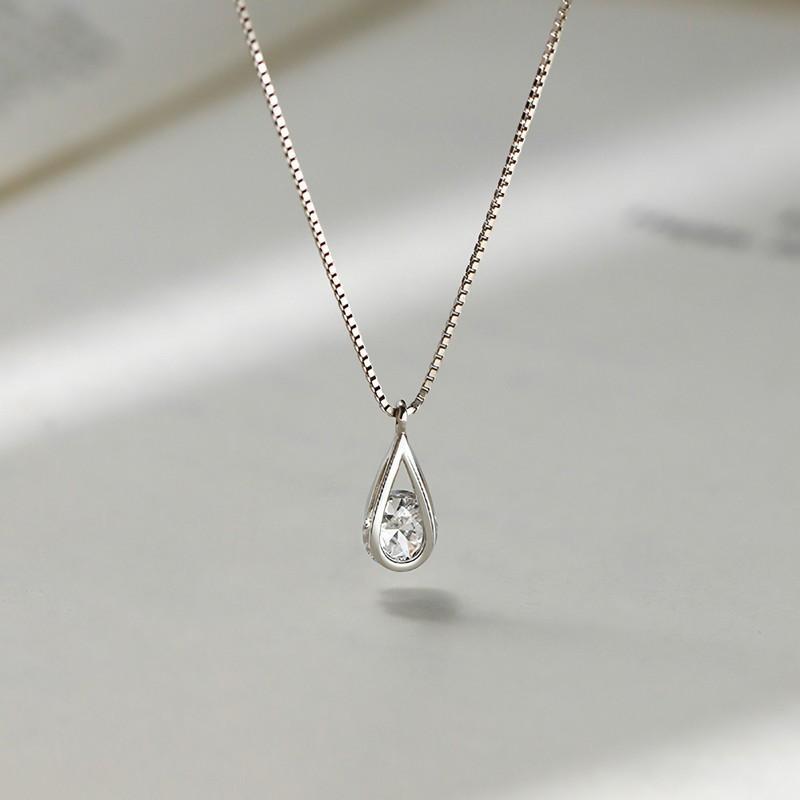 925 Silver Zircon Water Drop Necklace Geometric Collarbone Chain Minimalist Jewelry For Women