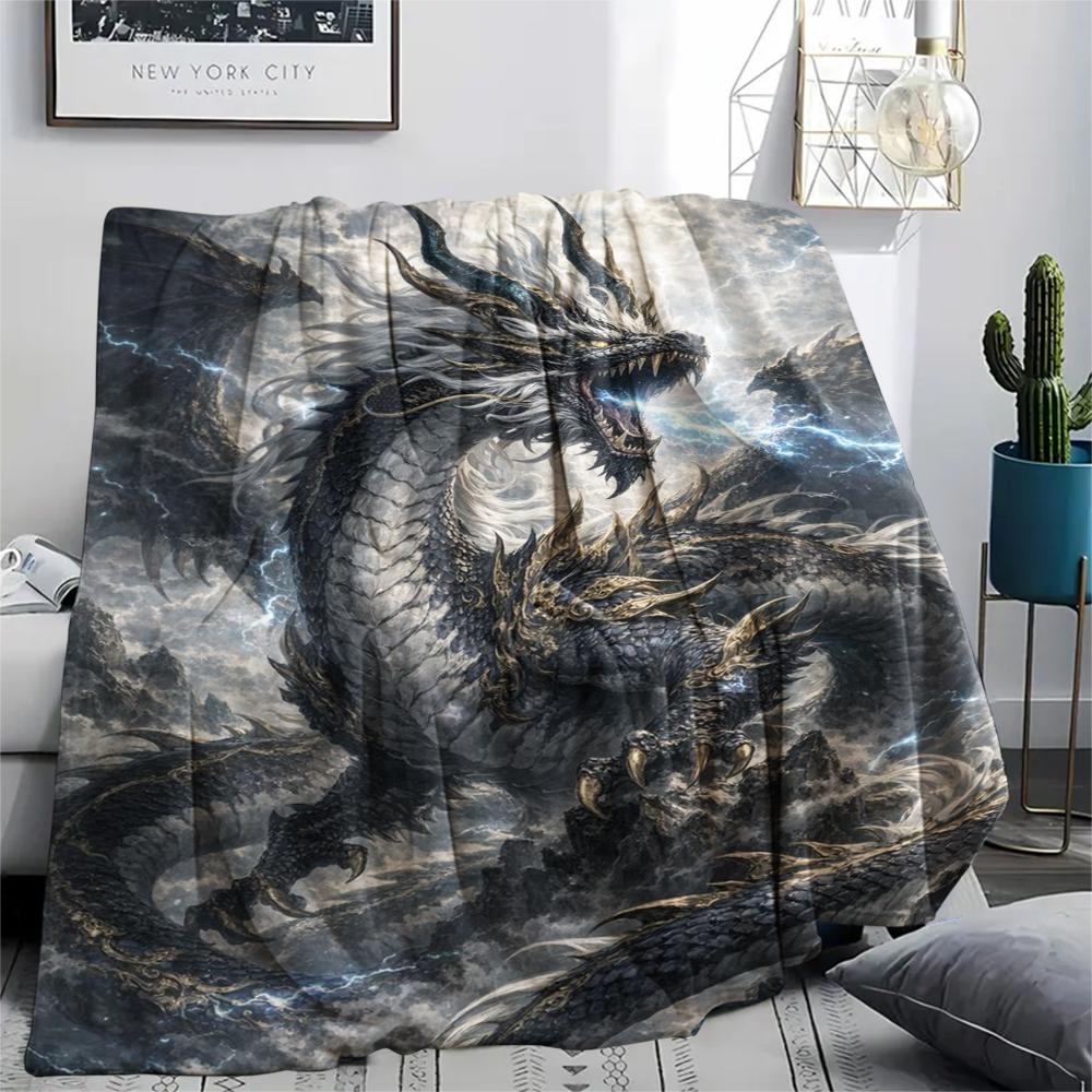 1Pc Fantasy Dragon Print Flannel Blanket, High Quality Comfortable for All Seasons, Home Decor, Warmth and Comfort, Perfect for Gifts