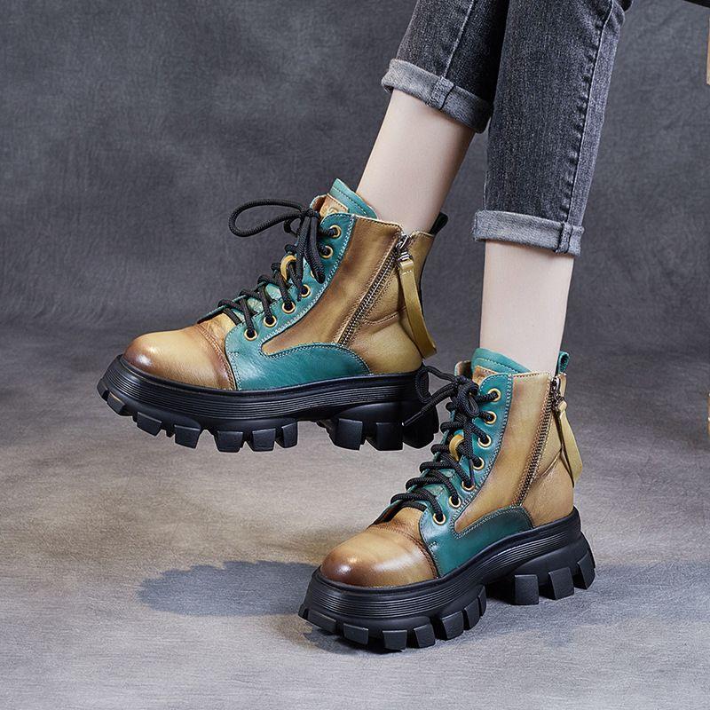 Fall/Winter Boots, Women's Chunky-Soled Color-Block Riding Boots, Vintage High-Top Ankle Boots, Fashionable Versatile Women's Boots