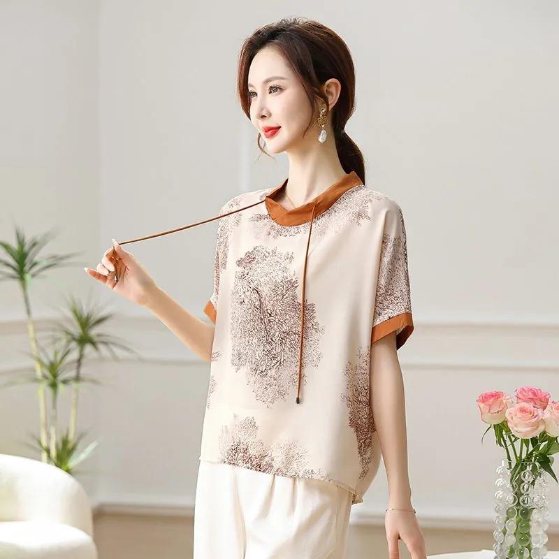 Summer Fashion Trendy New Chinese Style Blouse for Middle-aged and Elderly Women, Short Sleeve T-Shirt Casual Shirts