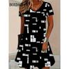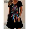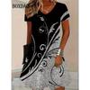 Summer 3D Print Dresses Women Fashion Pullover Short Sleeve V-Neck Dress Casual Retro Flowers Loose Plus Size Female Clothing