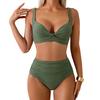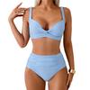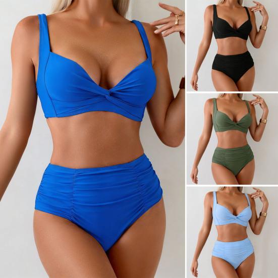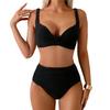 2Pcs/Set Women Bikini Set Knotted Design Chest Pad No Steel Support Bra High Waist Swimming Briefs Set Beach Pool Vacation Sexy Swimsuit
