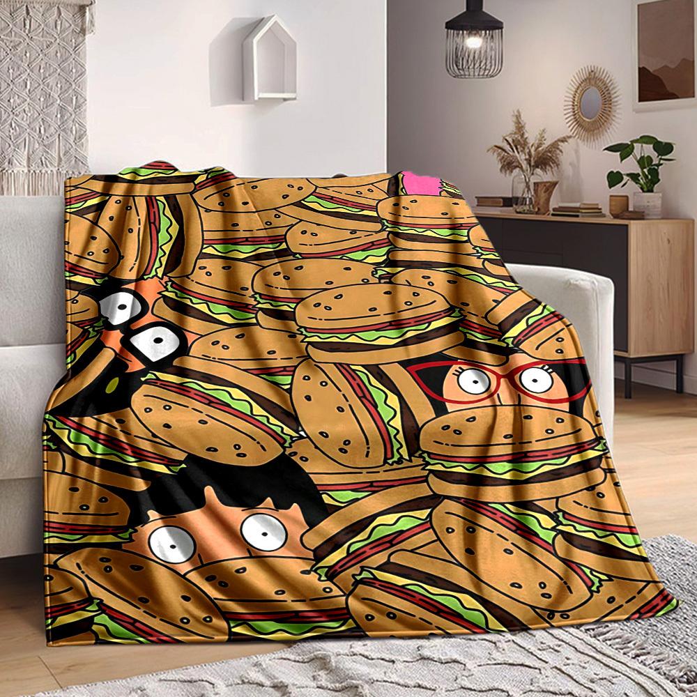 1pc Bob’s Burgers Cozy Print Blanket Lightweight Warm Flannel Throw Blanket For Sofa, Bed, Living Room