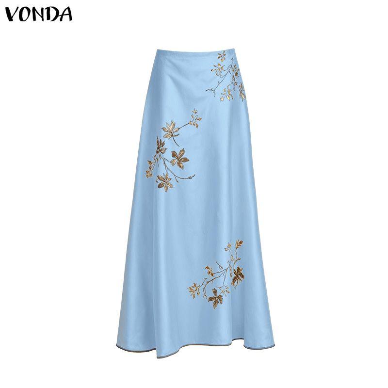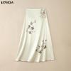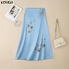 VONDA Women Casual Zip-up Print Satin Smooth Thin Maxi Skirts
