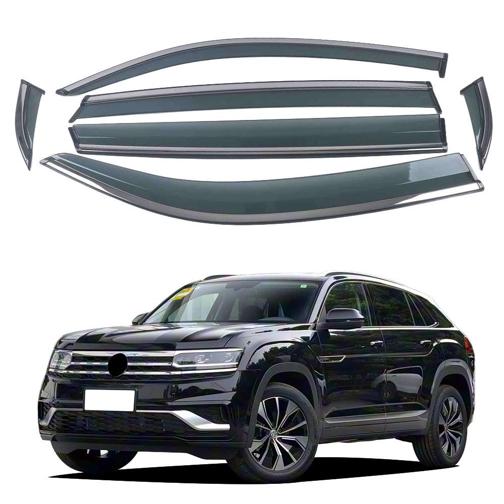 Rain Guard & Deflector with Bright Stripe for 2019 Volkswagen Teramont X Windows, Custom-Fit Design.