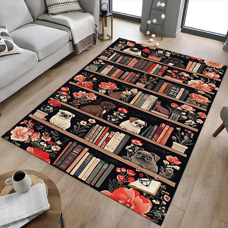 1PC Bookshelf Flowers Extra Large Non Slip Floor Carpet, Office, Family, Bedroom, Studio Large Area Rug Indoor Rugs, , Vibrant Colors