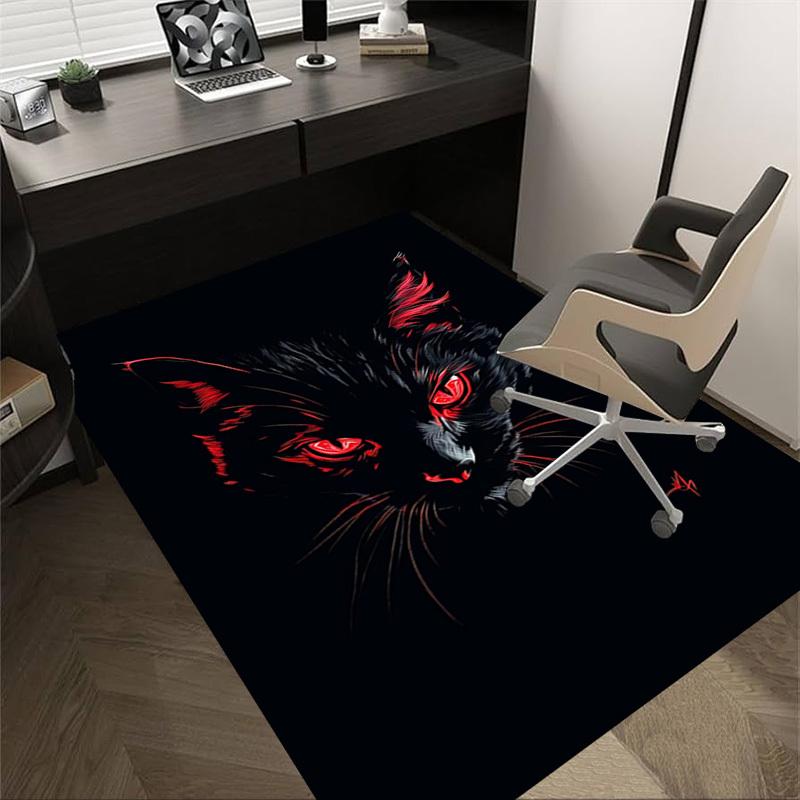 1pc Black Cat Carpet Anti Slip Polyester Floor Mat for office,Bedroom