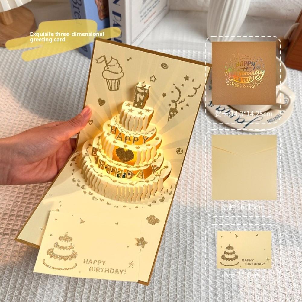 3D Light Birthday Card Folding Type with Musical Gift Message Cards with Envelope Pop Up Greeting Cards Birthday Party Supplies