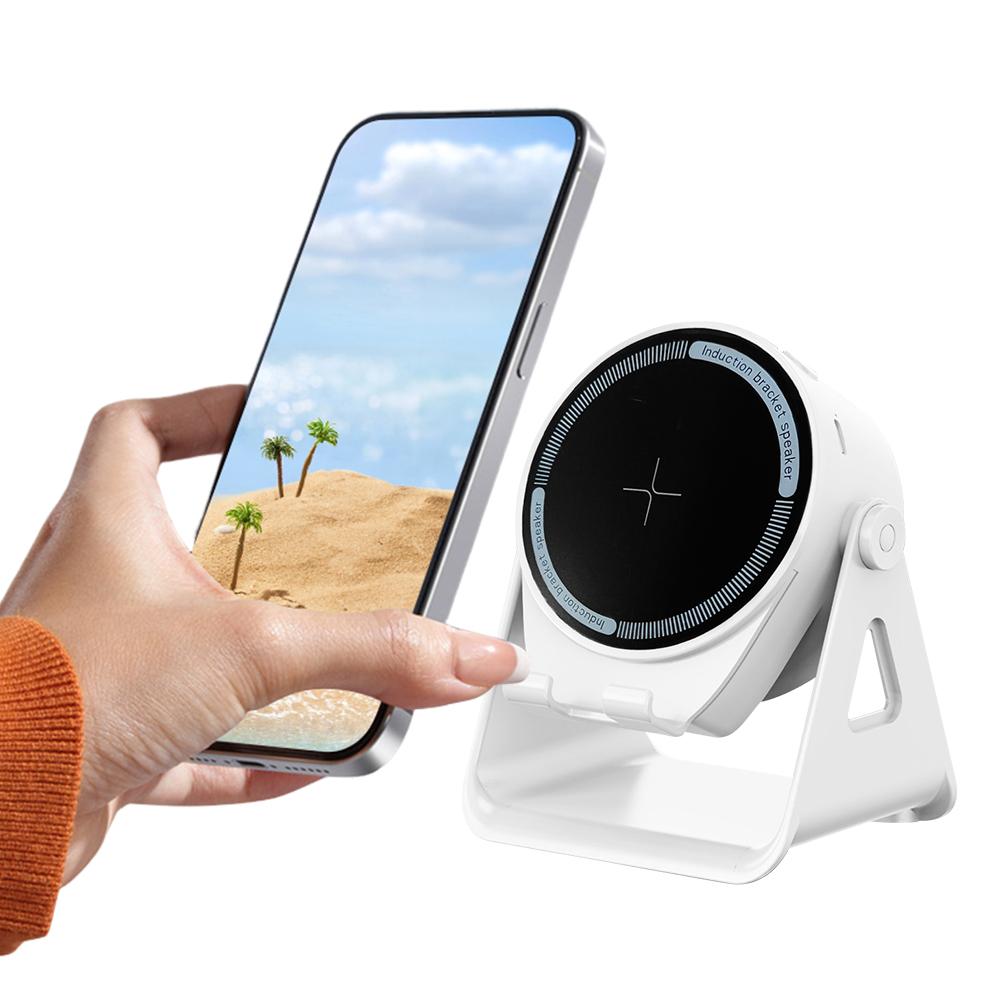 3 In 1 Induction Speaker with Phone Holder Smart Audio Speaker Anti-Slip Foldable Wireless Speaker for Universal Mobile Phone