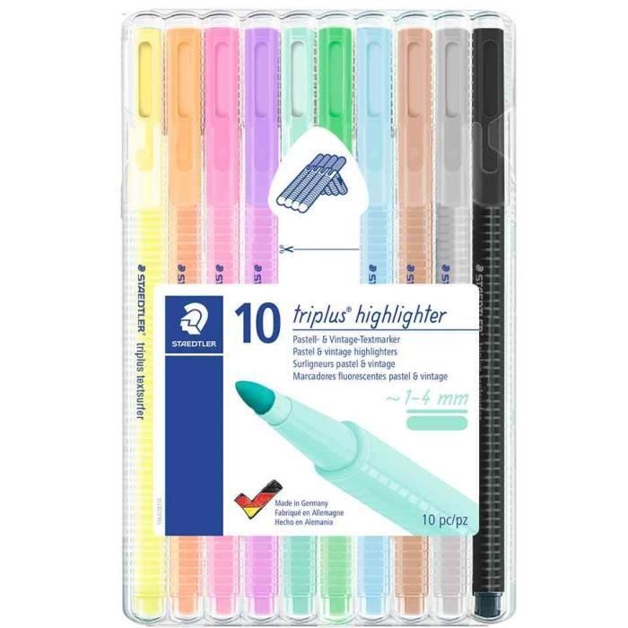 Surligneur - staedtler - triplus highlighter - étui de 10 - couleurs pastel et vintage - pointe triangulaire