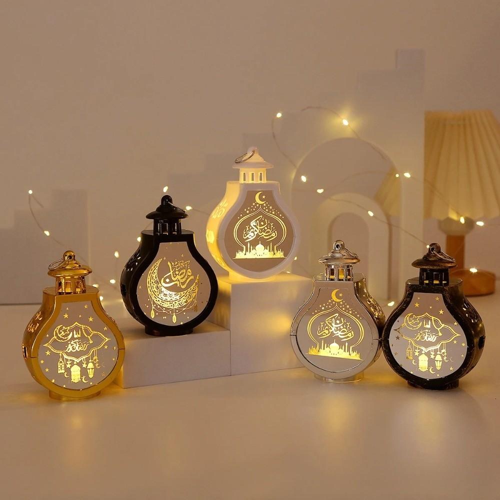 Eid Mubarak Moon Ramadan Decoration LED Lantern Plastic Handheld Moon Lantern Castle Lights Islamic Party Decoration