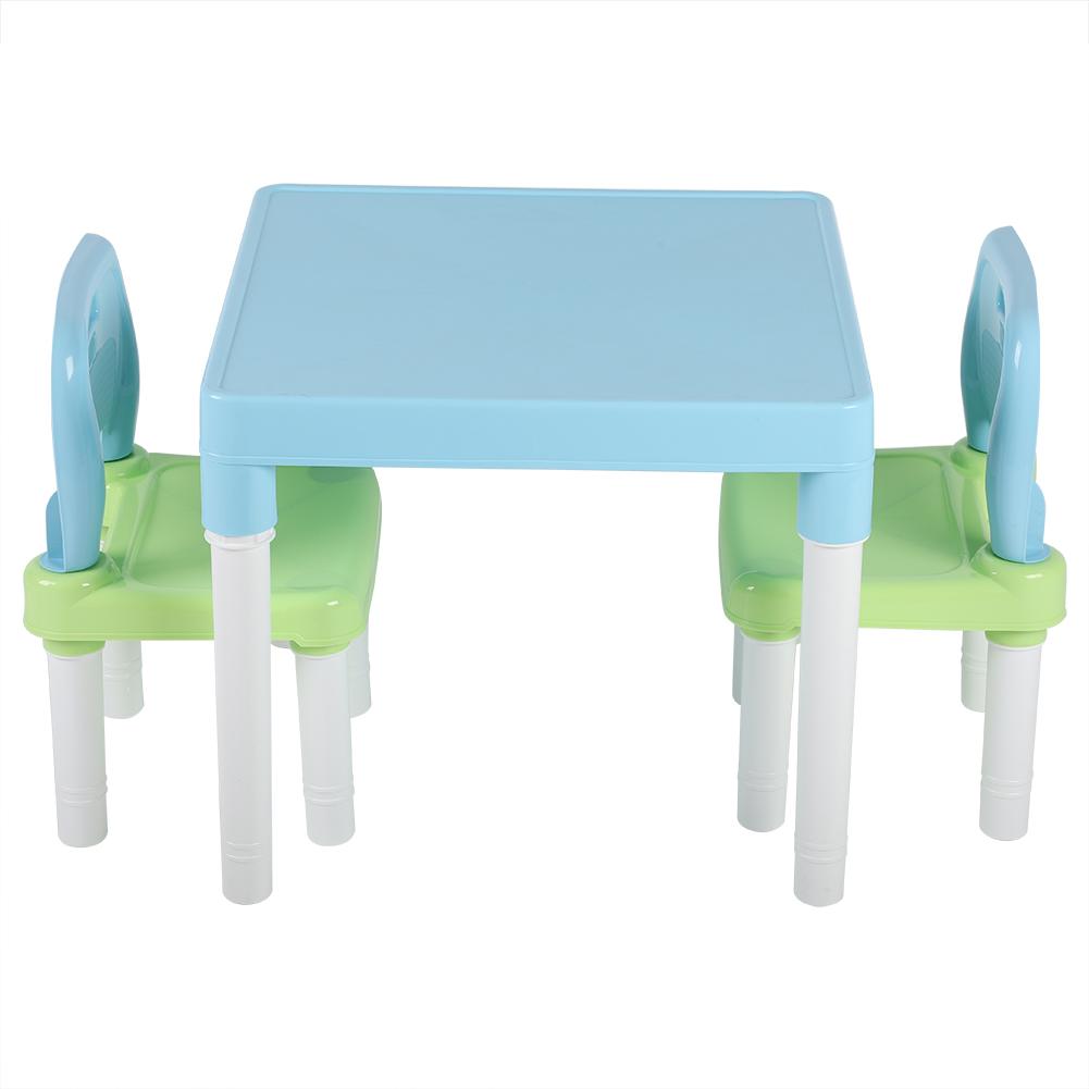 Childrens Kids Plastic Table Chair Set Lrning Studying Desk for Home Kindergarten Blue Green