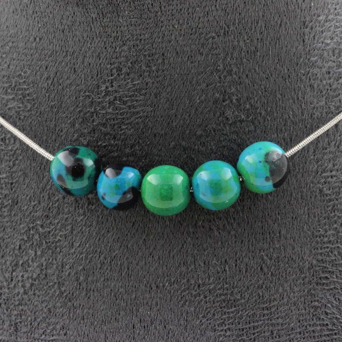 Stones and Minerals. Necklace of 5 Tinted Chrysocolla Beads 8 Mm. Stainless Steel Chain Necklace Women Men. Custom Size