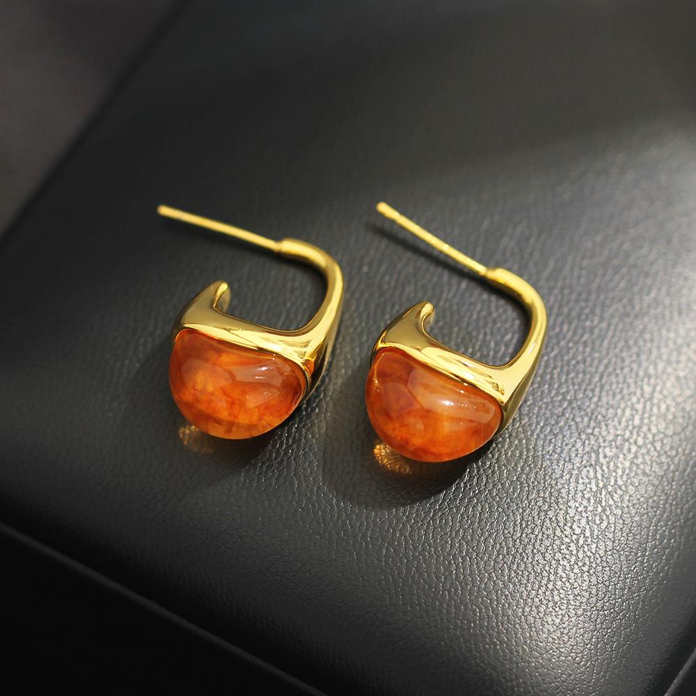 Medieval Gold Coffee U-shaped Amber Earrings, High-end Cold Wind Temperament, Niche Design, Middle Eastern Earrings