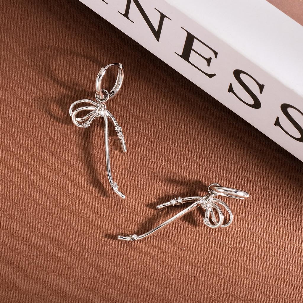 Silver Needle Exquisite Ballet Style Ribbon Bow Earrings, Light Luxury Design Sense Small Fresh Fashion Temperament Ear Buckle Women
