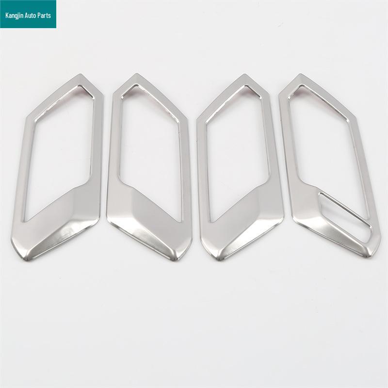 Stainless steel interior car accessories: Bright speaker ring, Front reading light, Front air conditioning vent, Gear shift panel outer ring, Rear water cup, Driver's cabin trunk release button, Interior pull handle bright ring