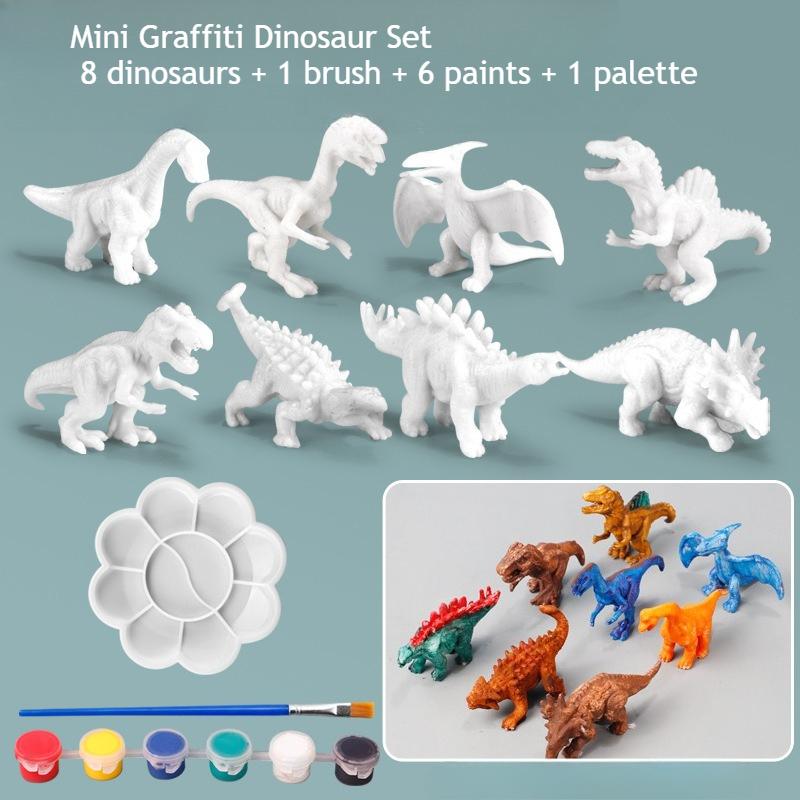 Paint Your Own Dinosaur Kit 8 White Blank Models with Paints Creative DIY Toy for Kids Fun Arts Crafts Educational Gift