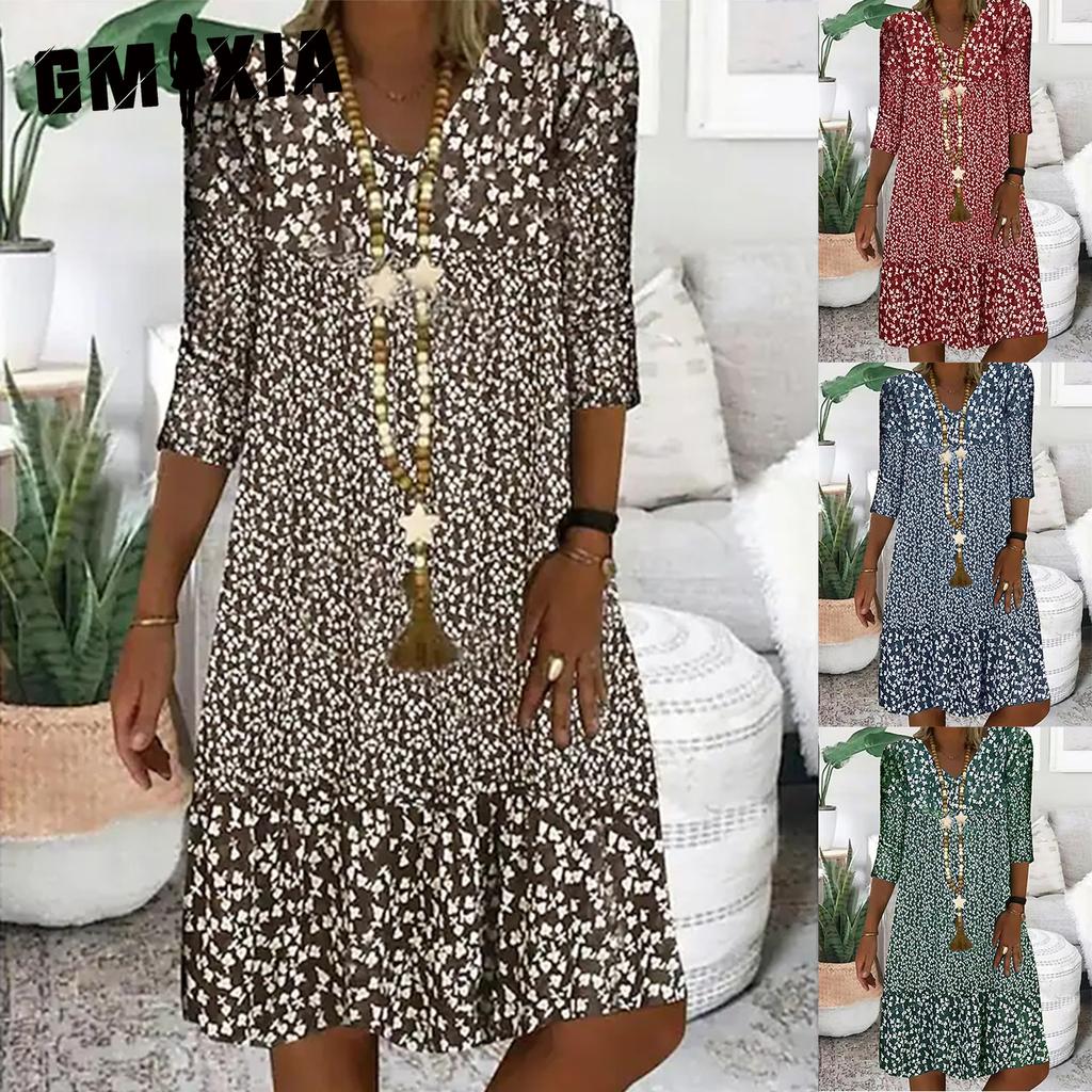 GMXIA Women's Fashion Summer Spring 3/4 Sleeve V-Neck Casual Dresses