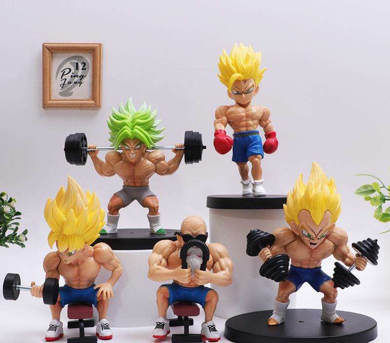 5Pcs/set Dragon Ball Super Saiyan Broly Green Hair Master Roshi Son Goku Bodybuilding Muscle PVC Action Figure Mode