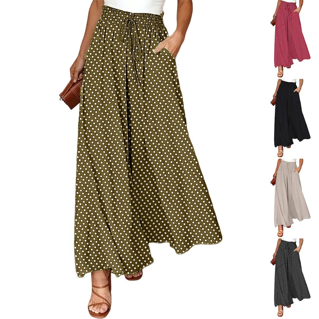 Women's Fashionable Bohemian Wide-leg Trousers With Elastic Waist And Polka Dot Print Long Skirt Pants