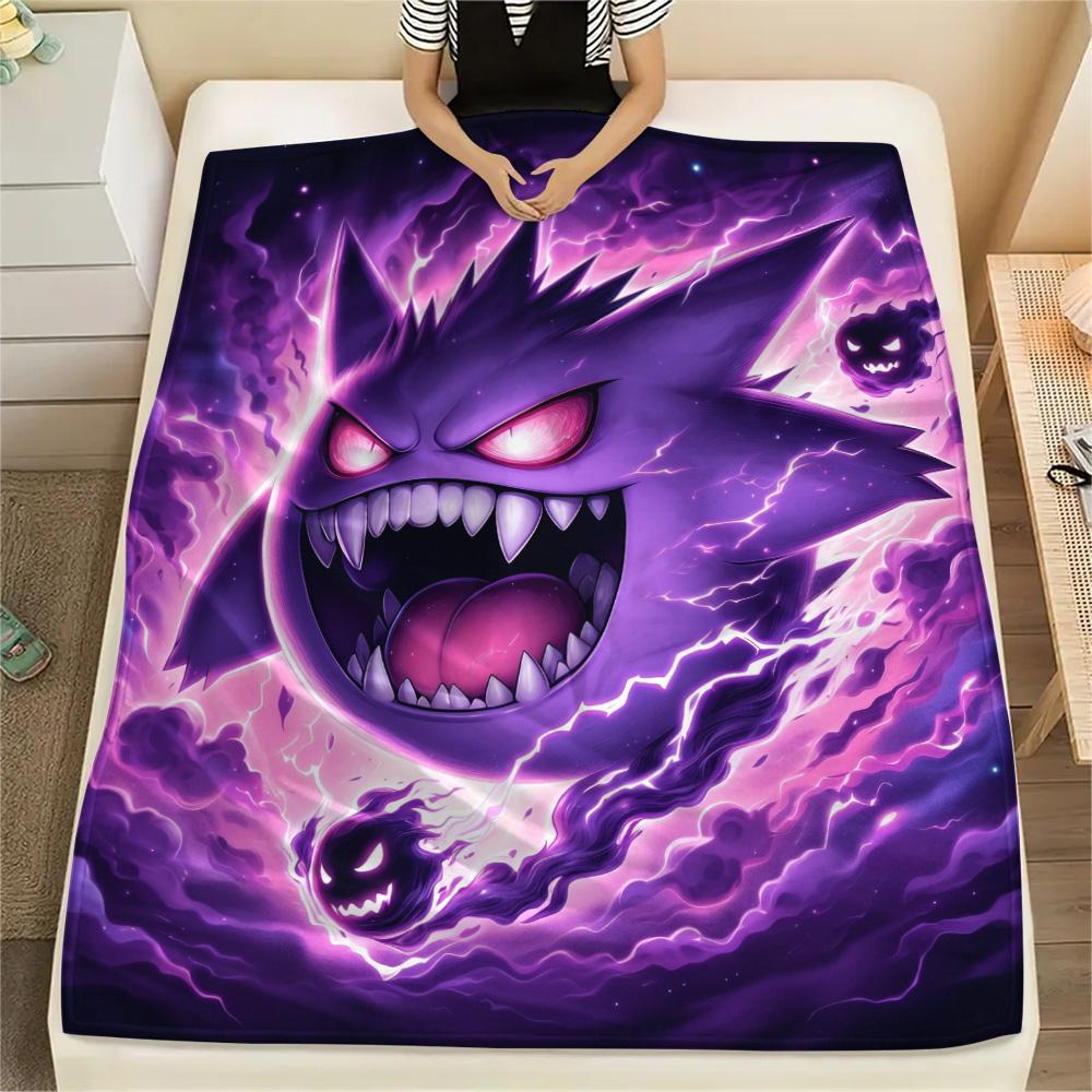 Gengar Print Flannel Blanket, High Quality Comfortable for All Seasons, Home Decor, Warmth and Comfort