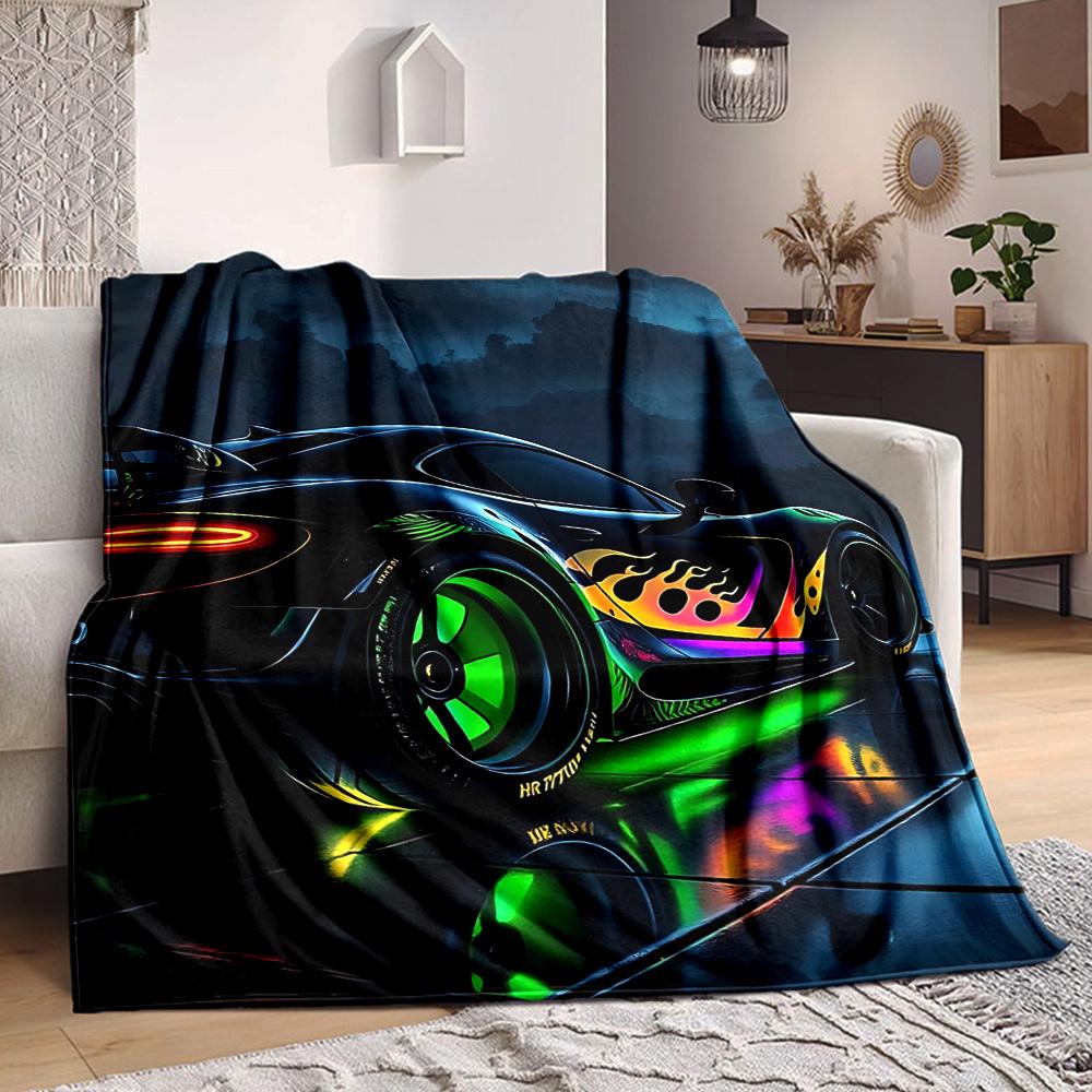 1pc Neon Flames Car Blanket Lightweight Flannel Blanket Throw Blanket For Sofa, Bed, Travel, Camping, Livingroom, Office, Couch