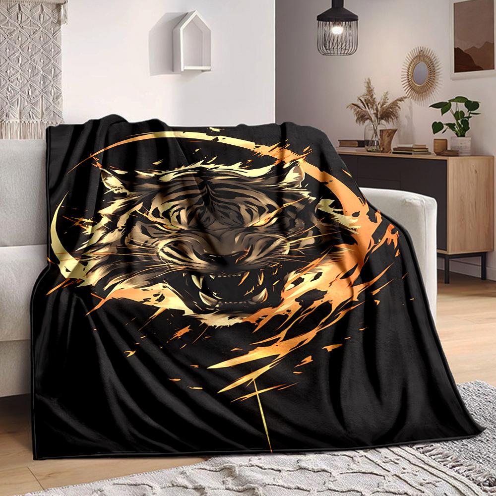 1pc Tiger Head Design Blanket, Lightweight Flannel Throw For Sofa, Bed, Travel, Camping, Livingroom, Office, Couch, Chair