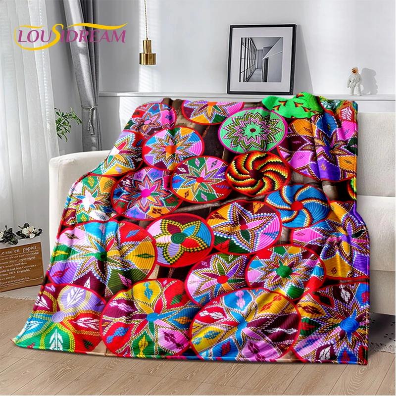 3D Ethiopia Colorful Flower Woven Art Baskets Mandala Soft Plush Blanket,Flannel Throw Blanket for Living Room Bedroom Bed Sofa
