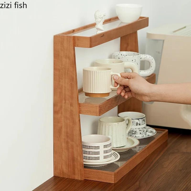 Multi Layer Storage Rack Wooden Acrylic Storage Tray Cup Storage Shelf Display Rack Decorative Rack Kitchen Storages Container