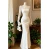 Women's Elegant Lace Maxi Long Sleeve Bodycon Evening Party Dress Gloves