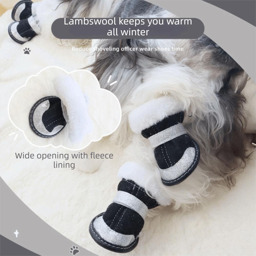4Pcs/Set Waterproof Winter Dog Shoes Thickened Warm Anti-slip Dog Shoes Adjustable Velvet Pet Snow Boots Outdoor Indoor