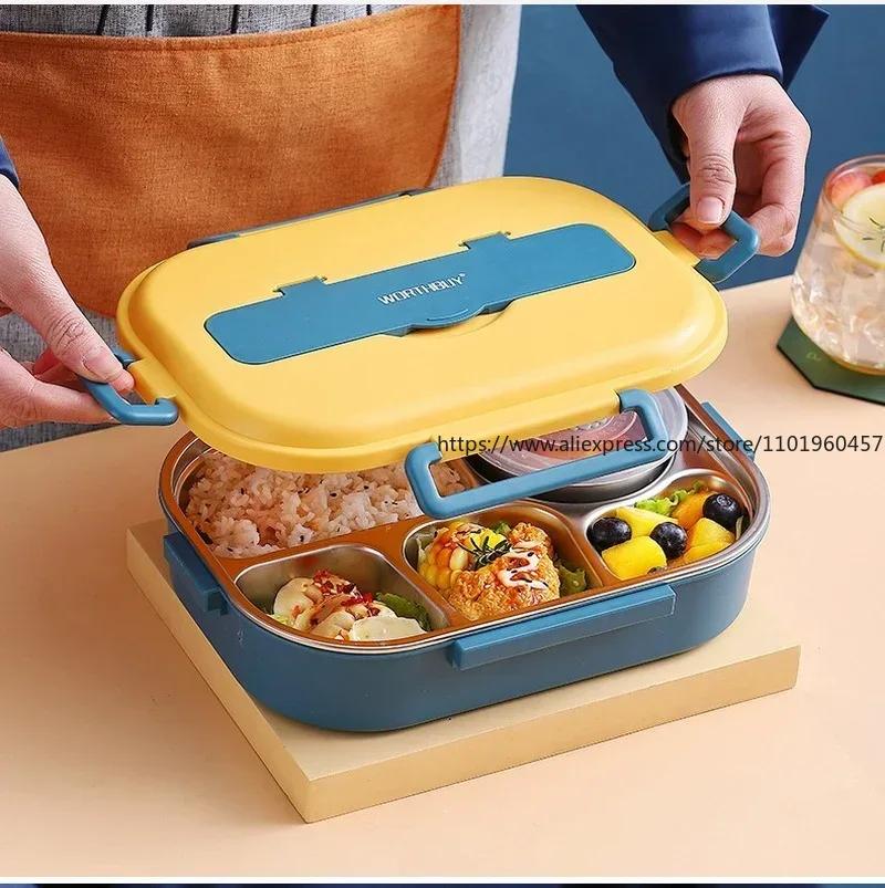 Portable Kids Lunch Box with Compartment 18/8 Stainless Steel Container for Children School Picnic Bento Food Box Lunchbox