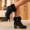Plus Size Women's Fleece-Lined Warm Ankle Boots 2026 Winter New Style Cotton Shoes High Heel Round Toe Platform Snow Boots