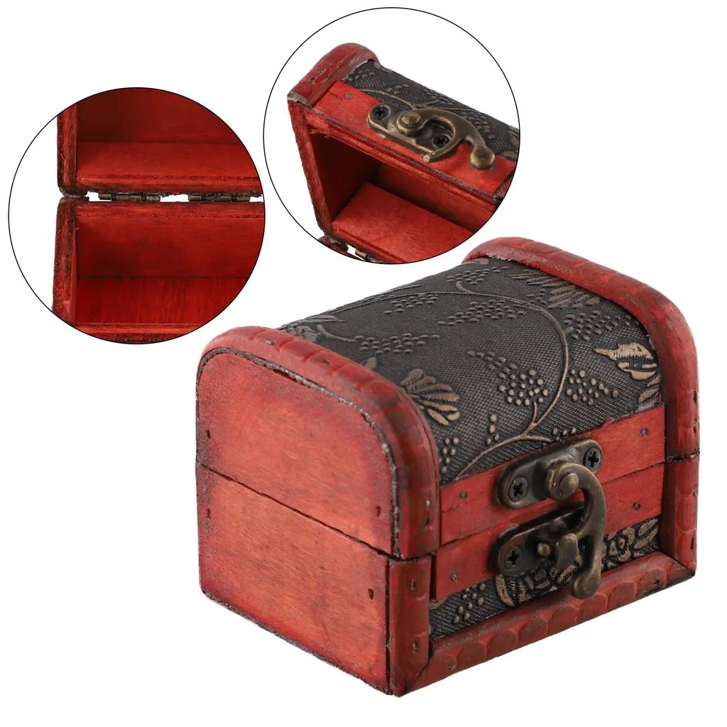 1PC Antique Mini Wood Treasure Chest Storage Box Jewelry Organizer Box Gifts Box Wooden Treasure Chest Jewelry Trinket Box