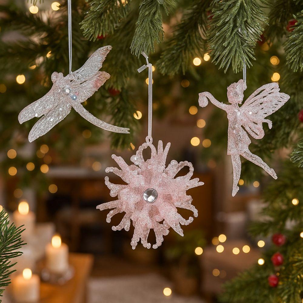 Glitter Christmas Tree Pendant Plastic Slightly Sticky Artificial Christmas Decoration Cartoon Candy Butterfly