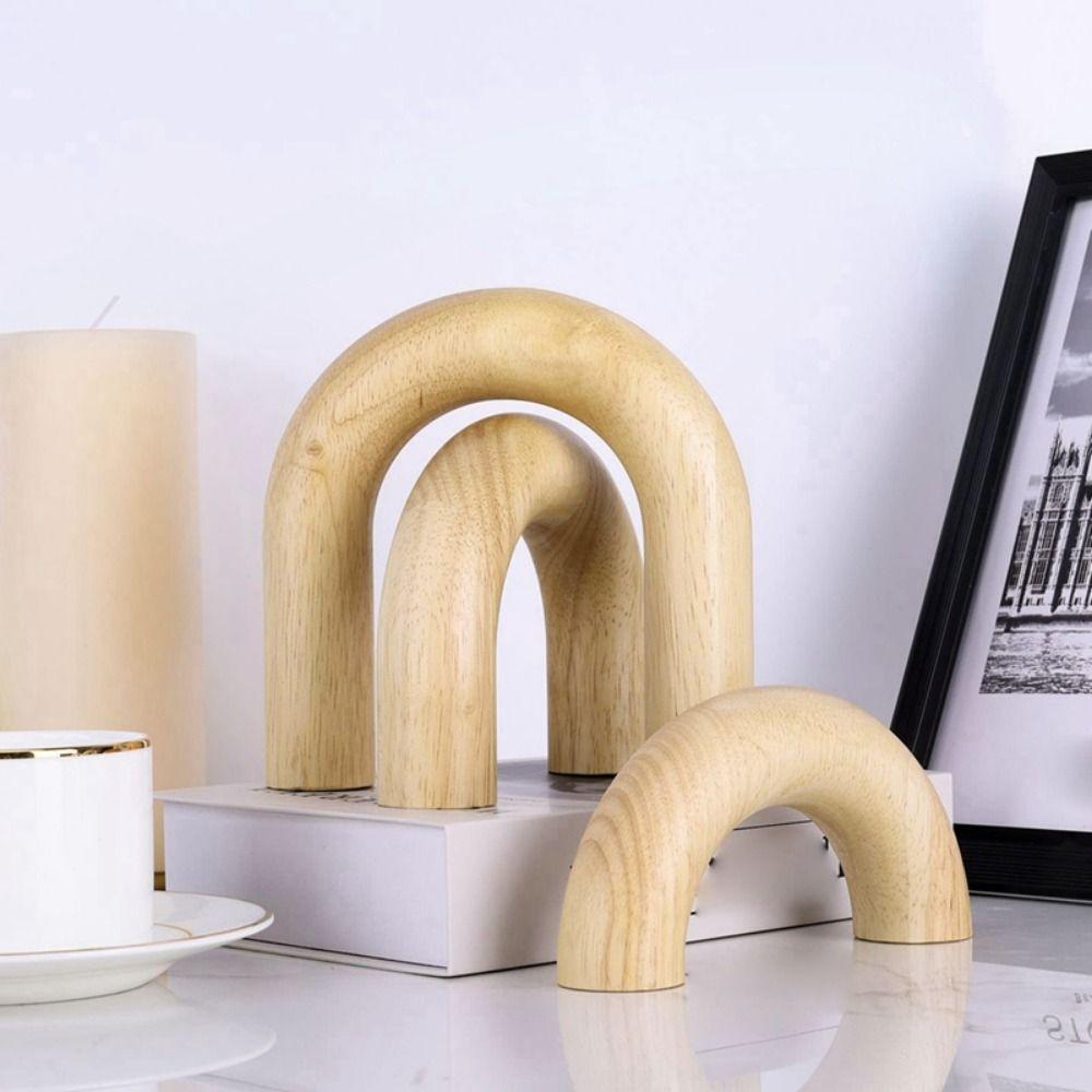 Modern Decorative Wood Arc Ornament Hand-carved Unique Arched Wooden Model Handmade Arch Craft Ornament Coffee Table