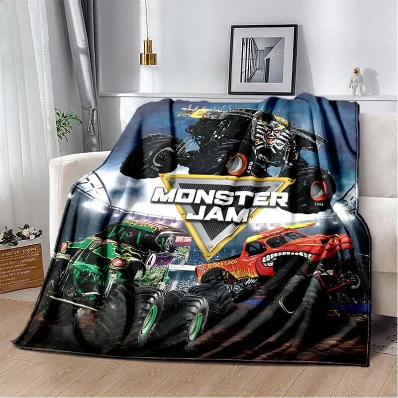 3D Monster Jam Monster Truck Cartoon Flannel Soft Throw Blanket Boys Bedroom Sofa Bed Warm Throw Blanket Picnic