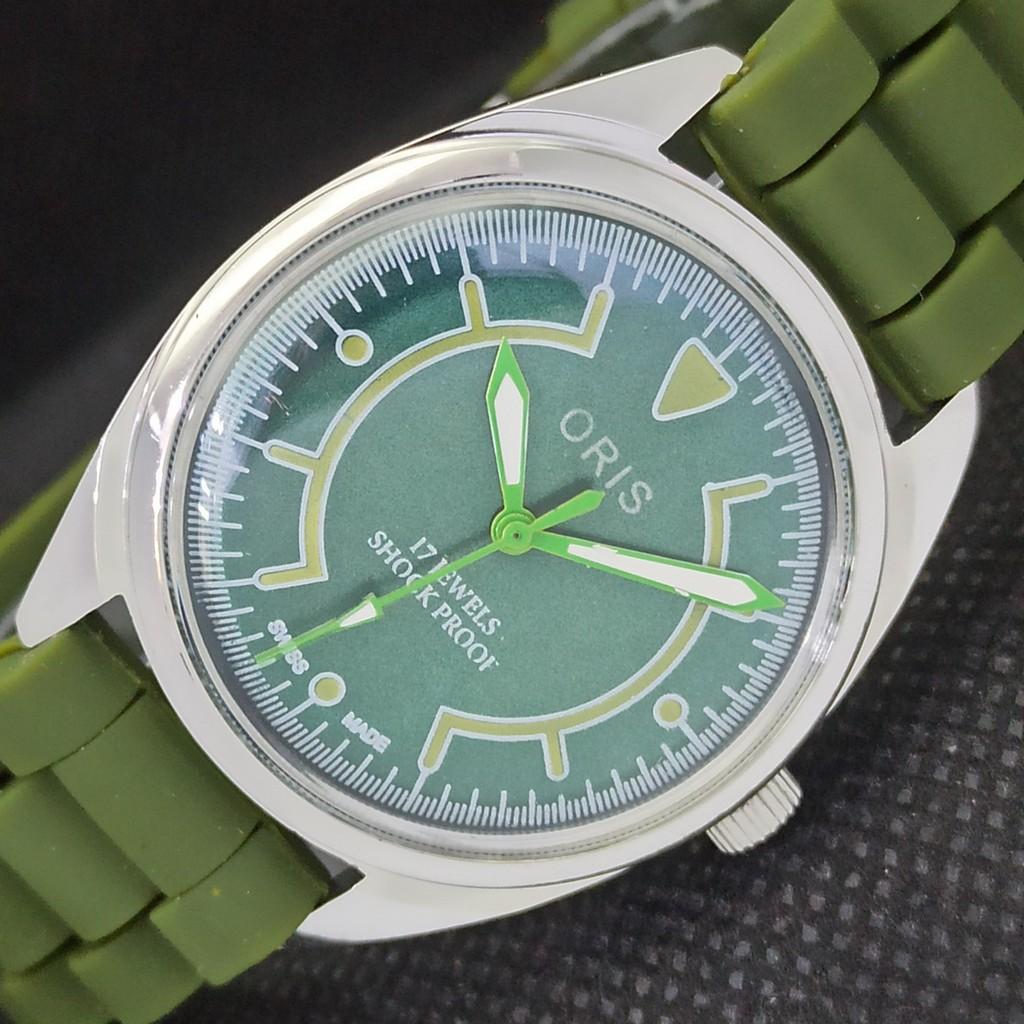 VINTAGE ORIS WINDING SWISS MENS REFURBISHED WRIST GREEN WATCH 558a-a296522-1