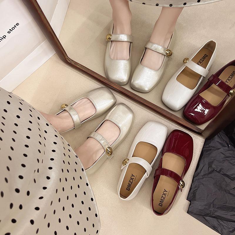 Square Head Mary Jane Shoes Women's Summer New Spring Shallow Mouth Soft Sole Small Leather Shoes Low Heel Flat Sole Single Shoes Women