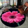 3D Daisy Nordic Flower Sunflower Round Area Rug,Carpet for Living Room Children's Bedroom Sofa Playroom Decor,Non-slip Floor Mat