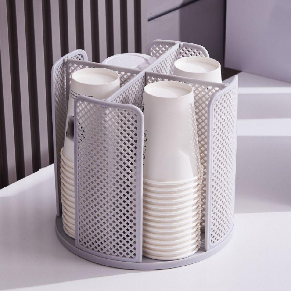 360° Rotation Cup Storage Rack Removable Multifunction Paper Cup Holder Space-saving 4 Compartments Desktop Storage Organizer