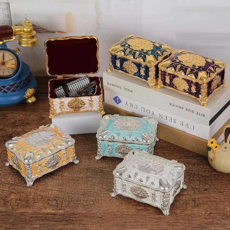 Portable Mini Jewelry Storage Box Travel Organizer Jewelry Case Alloy Storage Earrings Necklace Ring Organizer Display European