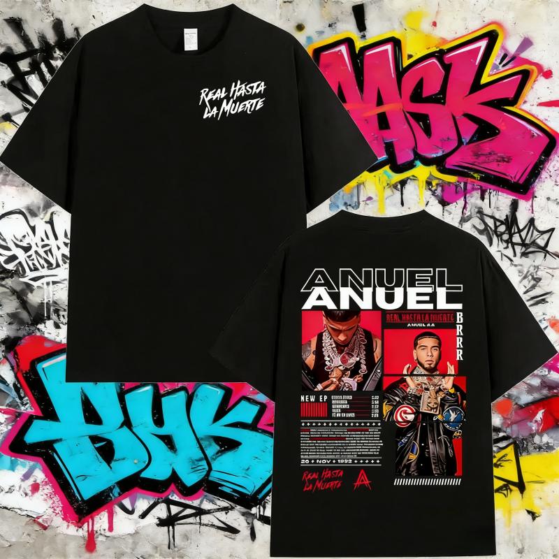 2025 Summer Rapper Anuel AA Real Hasta La Muerte Tour New Album Mens Hip Hop Gothic TShirts 100 Cotton Printed Tshirt