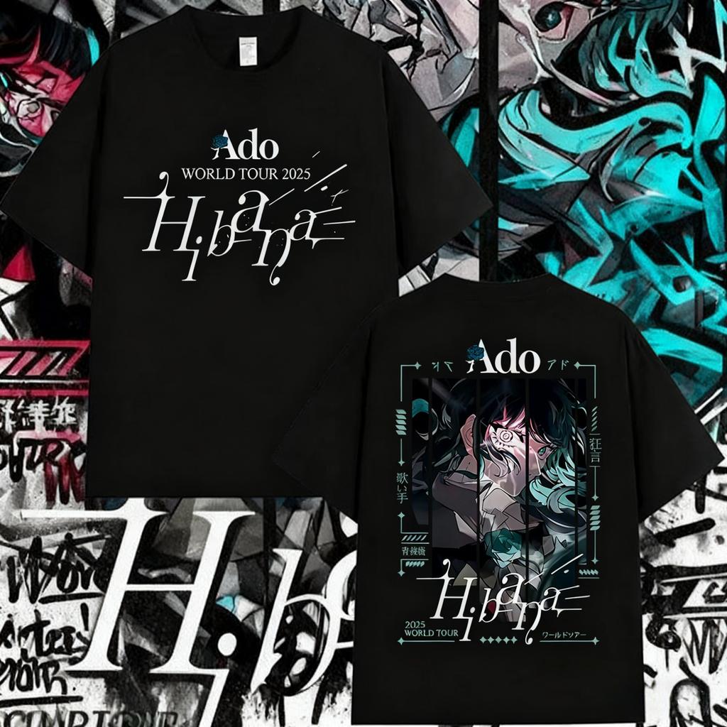 2025 Summer Japanese Ado Hibana WORLD TOUR New TShirts Men Women Clothing Gothic Short Sleeve 100 Pure Cotton Printed Tshirt