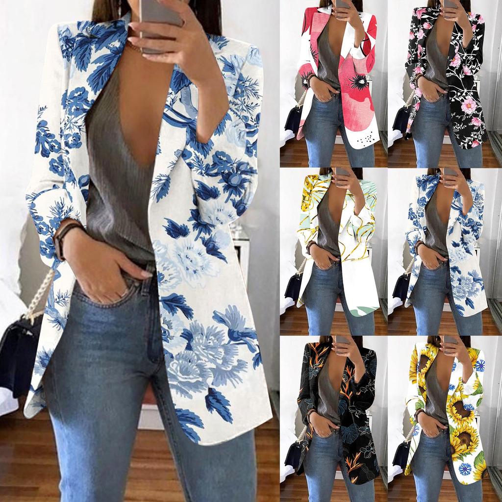 Women's Casual Fashion Print Lapel Long Sleeve Slim Fit Jacket